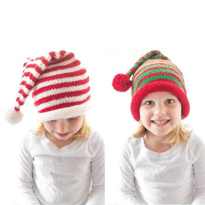 This classic Christmas striped stocking cap knitting pattern features fun holiday stripes, a rolled brim and a pom pom on top. It's the perfect holiday knitting pattern when you knit in red and white or red and green. BUT you can knit this cute baby stocking cap in any colors of your choice so it can also be for other holidays (blue and white for Hannukah), your favorite sports teams colors, or even your favorite magical wizarding school house! This hat is knit in the round and the instructions include step by step photos to add a pom pom on top of any of the four size options!