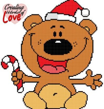 Christmas Teddy Bear Holding Candy Cane Stitch Graph