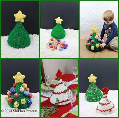 Materials: UK-DK, USA-Light Worsted (3), AU-8ply Big Tree 300g stuffing 100g Small Tree 150g stuffing 60g Baubles (each) 3g Yellow Star 7g Red Star 6g