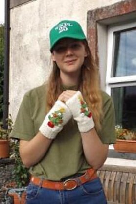 This is a simple hand warmer festooned with Christmas cheer. The hand warmers are knitted in the round and separate parts are made for the tree and star. The pattern uses picking up stitches and a button hole technique for the thumb holes.