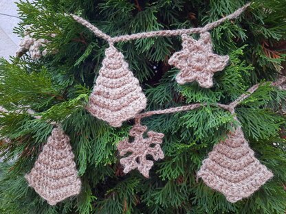 One size only: Christmas tree: height approx. 4 inches (10 cm) Snowflake 1: diameter approx. 2 2/3 inches (6-7 cm) Snowflake 2: diameter approx. 2 ½ inches (6 cm) Garland length 6ft 3in (190cm) - can be customized