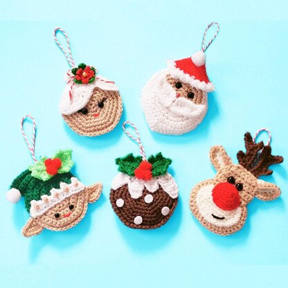 Christmas Tree Ornament Crochet Pattern - Santa, Mrs Claus, Reindeer, Elf & Pudding Holiday Decoration