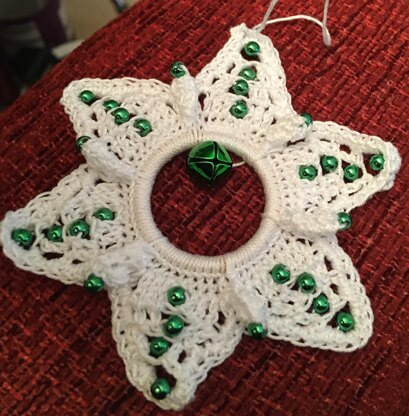 This is a pattern for a Christmas tree decorations: a wreath. In addition to the thread, you will need a 30mm solid ring, 30x 4mm beads and a 10mm decoration to complete the pattern as written.