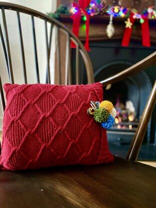 If you want to improve your knitting skills before you start much bigger project, this Christmassy Pillowcase knitting pattern is exactly what you need! So, if you have some yarn stash - ready steady go! You need to know how to work cables and simple stitches as knit and purl, also make pompoms.