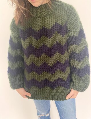 This oversized and chunky sweater is a dream to wear! It is so cozy and warm! The chevron pattern is knit with a simple chart. You can even knit this sweater in a solid if you are a beginner. The shape is very simple and these giant needles are perfect for a quick knit this winter.