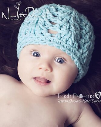 This is the sweetest little baby hat! It features a beautiful feathery stitch pattern, and a gorgeous crochet flower. Adorable! Chunky yarn allows it to work up fast. Makes a fabulous photo prop too!
