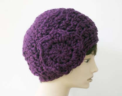 This is an easy pattern appropriate for a beginner. It used bulky yarn and crochets up very quickly. A good pattern to practice crocheting in the round. The hat is embellished with an easy to crochet flower.