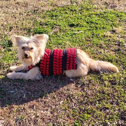 The Chunky Lattice Dog Sweater is a worked in the round from the neck to tail and is perfect for those chilly days. It features the linked tunisian simple stitch, crossed double crochet stitch and half double crochet cluster stitch. It is a quick crochet project and makes a great gift for your furr-babies!