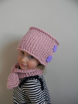 Skill level: beginner to intermediate Finished dimensions: sized for girls and women (head circumference about 20-22 inches). Yarn: super bulky weight yarn (about 6 oz). Needles: double point needles and 16" circular needle size 9mm/US13 or size to obtain gauge. Other materials: tapestry needle, stitch markers. Gauge: 10 st and 18 rows = 4" (garter stitch)