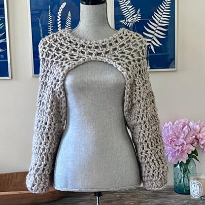 Bolero, shrug, whatever you call it, it’s SO GOOD! Chunky, squishy and super stylish. By crocheting just the sleeves and a neckband without a back or front allows this shrug to fit a variety of body sizes, and you can further customize the fit by making the sleeves shorter or longer. If you have large upper arms or are blessed with a large chest, only seam the sleeves up to the elbow. For smaller arms, sew further up the arm.