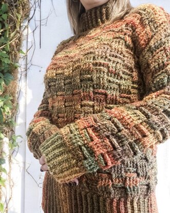 Beautifully illustrated 16 pages pattern with all the photos and information you need to create your own Chunky Weave Sweater.
