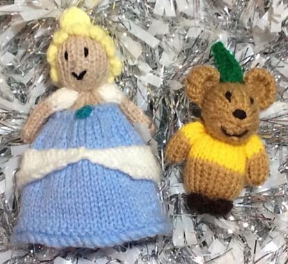 This knitting pattern is for a Cinderella and Gus the mouse inspired tree decorations / toys.