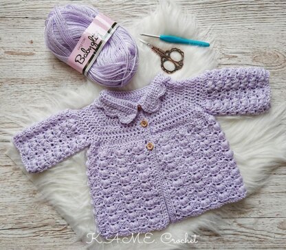 The cardigan is available in 3 sizes: 0-3 months, 3-6 months and 6-12 months