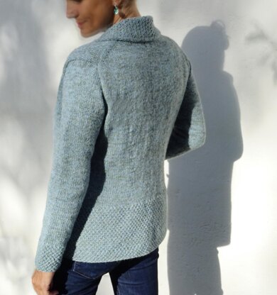 City Trip Jacket is the perfect companion for taking a quick city trip, replacing a light coat. … or to cuddle in on a cold winter day, sitting near the fire place … A relaxed cardigan with a comfortable shawl collar and useful pockets. This cardigan is knit from the top down in one piece. The pattern includes options for a decent waist shaping, a straight version or a slight a-shape and optional bust darts