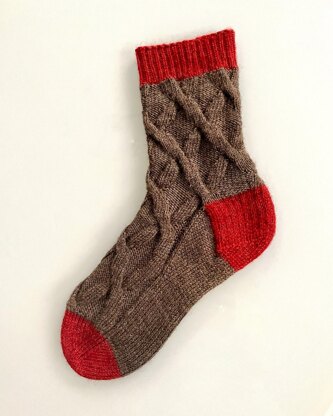 This cable pattern was love at first sight. I knew right away I wanted to use it for a sock design. It was fun challenge to make the cables work in multiple sizes, and I hope you’ll agree that the end result is well worth it! Due to the cable pattern’s inflexible nature, it is very important to choose a size based on actual foot circumference with zero, or even a little positive ease! Enjoy!