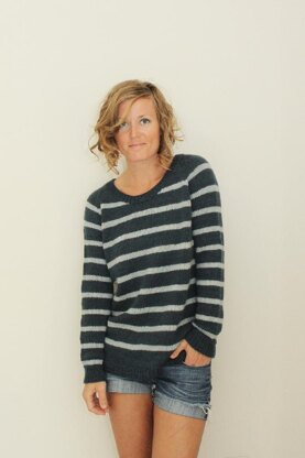 Knit from the top down and in the round, the Clarke pullover features modern stripes in contrasting shades of denim. This design incorporates positive ease for a comfortable sweater you’ll want to live in. The length is perfect for jeans or shorts, ending in a flattering split hem at the beltline.