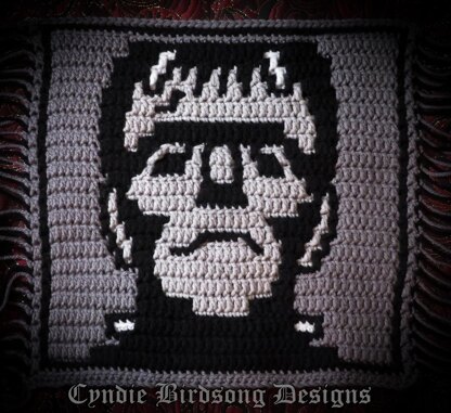 This pattern is part of my Classic Horror Films series, to create an overlay mosaic crochet square that can be used in other types of projects, such as blankets, pillows, satchel bags, table mats, etc.