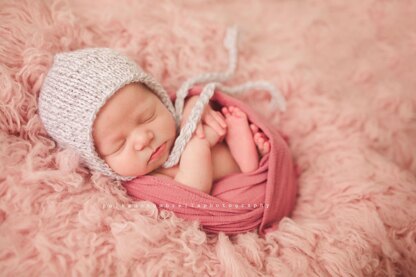 The pattern is written in English in US knitting terms. It include instructions for size NEWBORN bonnet. Knowledge of basic knitting stitches is required.