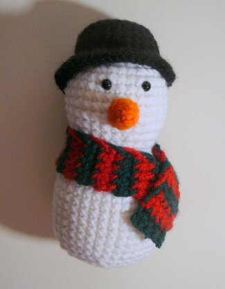 Finished Measurements Head: 8 inch circumference Hat: Approx. 1 inch tall, 3 inches across Nose: Just under 1 inch long Scarf: 11 inches long Whole toy: Approx. 6 inches tall