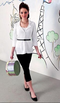 This is a pattern for a Classic White Shirt. This was originally published in Knitting magazine in a French themed issue. It is a simple shape based on a classic shirt with a rever collar, 3/4 sleeves. Photos Laurel Guilfoyle for Knitting magazine.