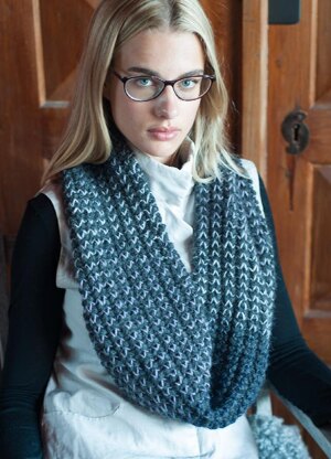 This simple, yet striking cowl is deliciously alpaca soft. It is worked in two yarns of two very different weights in stripes on one size needle! A perfect addition to your fall wardrobe!