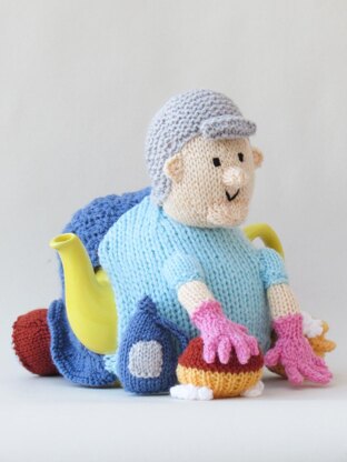 The Cleaning Lady Tea Cosy knitting pattern is a wonderful knitting project to make this amazing tea cosy of a cleaner hard at work.
