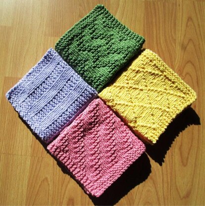 Knit and Purl Dishcloths Using only Knit and Purl stitches, this pattern includes directions for four different dishcloths. Each dishcloth is a great take along project, or for the the Beginner Knitter. Follow these instructions to produce a denser fabric that make the designs “pop”. The dishcloths are a generous 9½” x 9½”. All four will make the Beginner Knitter look like the expert knitter they are developing into!