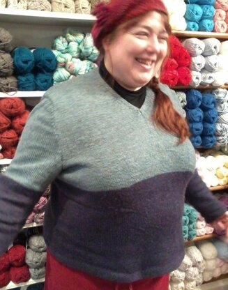 This winter sweater is worked in stockinette stitch with cuffs, hem, and neckline in seed stitch. It is worked in the round and has no seams except for attaching the sleeves. The body features a set of four darts that shape it smoothly for a more flattering fit. Worked with DK yarn in two colours (50% of each) using US 6 (4mm) circular needles. A crochet hook of the same size is needed at the beginning to make the provisional CO as described in the pattern. Includes schematics with full measurements. To fit bust from 34 to 60 inches.
