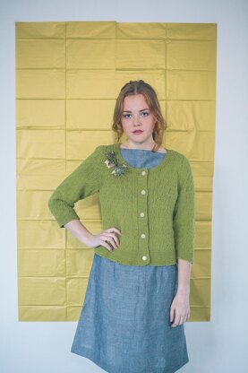 Classic cardigan with deep garter stitch edgings and optional knotted cast on.