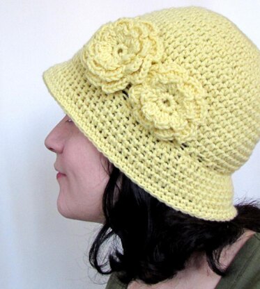 This retro-inspired cloche hat features two crocheted flowers that can either be sewn on or attached with safety pins in the last step. It's also fully customizable as you can just add one flower, omit the flowers altogether or even weave a piece of ribbon through the open spaces in the band of the hat.