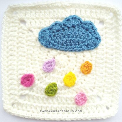 The Cloud and Rain Granny Square is a cute afghan block perfect for baby blankets, granny square pillows, wall hangings, or anything for the nursery decor.