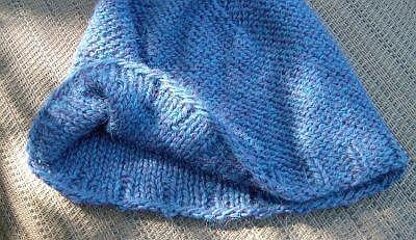 This creation is meant to be worn purl side out, for extra smoothness against the scalp.