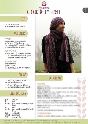 Cozy cabled scarf knitted in a bulky alpaca blend. With this yarn and needle size, you can get ready for winter in no time!
