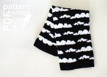 Knit your own 33"x35" black and white baby blanket with an eye-catching cloud design. This pattern uses both garter and stockinette stitches along with stranded colorwork techniques to create fun and modern repeating cloudy stripes. The stranded technique adds a double thickness to the blanket, making it perfect for playing with baby on the floor. Knit with #4 worsted weight acrylic yarn, this blanket is durable and easily washable. These written instructions include a colorwork chart, making it an easy to follow how-to.