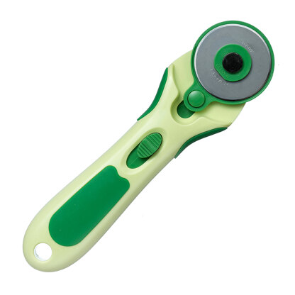 Clover's Soft Touch Cushion Handle rotary cutter cuts fabric beautifully with just the right amount of blade exposed, whether held upright or at an angle. Can be used by both left and right handed people.