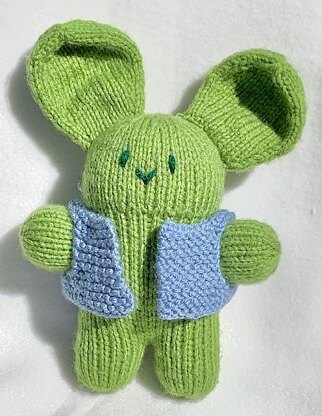 A loveable bunny that is knit in the round for minimal sewing! Also included is a vest pattern (which is knit flat) so your bunny can be a sharp dresser.