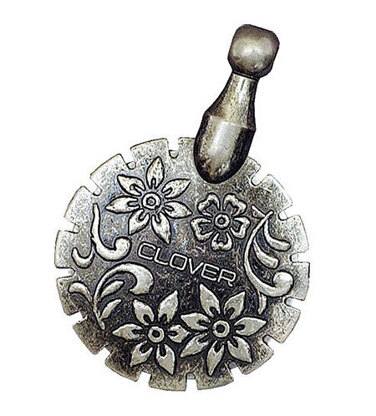 Styled on an antique thread cutter, this thread cutting pendant can cut a variety of different threads.It consists of a sharp circular blade sandwiched between a zinc decorative pendant. The thread can be cut using any of the groves around the pendant.This item has become very popular following the ban on use of scissors on aeroplanes.© Clover Mfg. Co., Ltd. Japan.