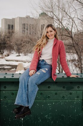Cloverwood is a classic cardigan design featuring afterthought pockets, a ribbed, fold-over collar and relaxed sleeves that cinch tight at the sleeve cuffs. Crocheted in the beginner-friendly linen stitch, this cardigan works up quickly while only needing to reference the pattern a couple of times - perfect for distracted crocheting!