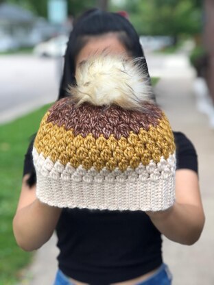 Materials : #4 Medium weight yarn I used Scheepjes Stone Washed XL #4 medium yarn ( 75 meter/82 yards ) per skein Color A : 861 Pink Quartzite Color B : 849 Yellow Jasper Color C : 862 Brown Agate Crochet hook size 5 mm Scissors Yarn needle Pom pom