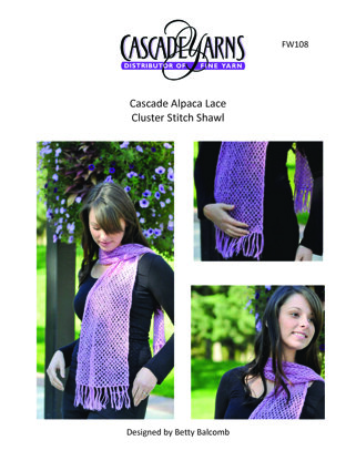 Cluster Stitch Shawl in Cascade Yarns Alpaca Lace - FW108 - Downloadable PDF is a free Intermediate Knitting pattern by Betty Balcomb, available as a Downloadable PDF and includes instructions in English. Super fun to make, this pattern could be your next masterpiece!