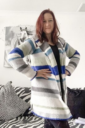 The Coastal Cardigan is crocheted in Tunisian Honeycomb stitch.