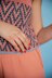 For textures, colours and pattern ideas, Sandra looked to the shapes and colours of plants and to Huichol art in her homeland of Mexico. The result is a bodice decorated in chevrons using a mosaic crochet technique. The piece is worked in the round from the bottom up, with a simple contrast trim around the hem, neck and sleeves. The open effect of these stitch textures in pure linen yarn uses the ultimate stay-cool fibre to finest effect.