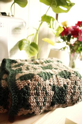 The crochet blanket can be made in different sizes by easily adding more squares. It's beautiful design to place in a rustic home living room and makes the perfect timeless heirloom piece.