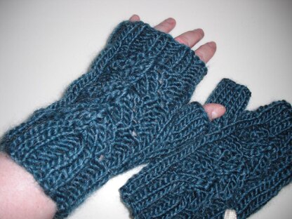 I wanted to make some fingerless mitts from Rowan Cocoon which is a fabulous yarn. As I couldn't find a pattern I liked, I decided to design my own. These are very warm and cosy.