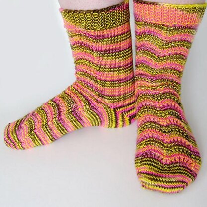 These socks are worked from the toe up using the Magic Loop method and The Unapologetic Knitter’s Ribbon Heel. The socks can be knit two at a time as the pattern for each sock is identical. In case of using DPNs, assume that the Front Needle is synonymous with Needles 1 & 2, and that the Back Needle is synonymous with Needles 3 & 4.