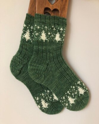I always dreamed about designing a pair of socks in a perfect forest green with white contrast of trees and snowflakes. Perfect to wear all winter long these socks will definitely be a pleasure to knit! Cold Winter Nights socks is a simple yet beautiful color work design. With only a few rows of color work at the top and the bottom if you chose, the rest of the sock is mindless and a great knit :)