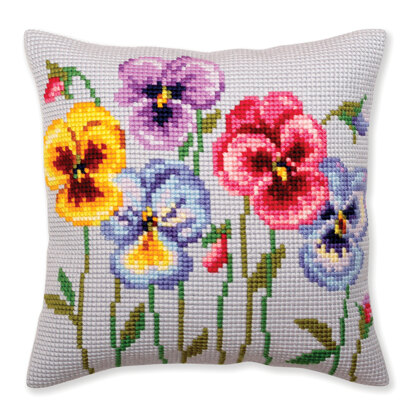 Collection D'Art Pansies Cushion Cross Stitch Kit - 40cm x 40cm