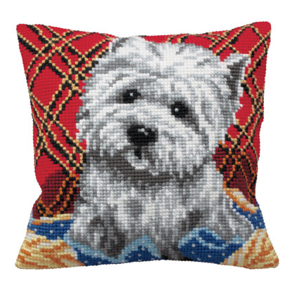 Collection D'Art Westie on Plaid Cushion Front Chunky Cross Stitch Kit - 40cm x 40cm