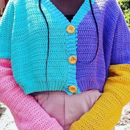 The Oversized Colorblock Cardigan is a beautifully crafted crochet master piece that is easy for any beginner crocheter. The pattern contains insytuctions for multiple sizes (XS - 5XL). It uses a simple/common double crochet stitch for the main portion of the cardigan. The most beautiful thing about this cardigan is that, you can use any 5 colors of your choice to create your own signature piece. S, you can eith go bold and colorful or pastel and glowy, the choice is yours.