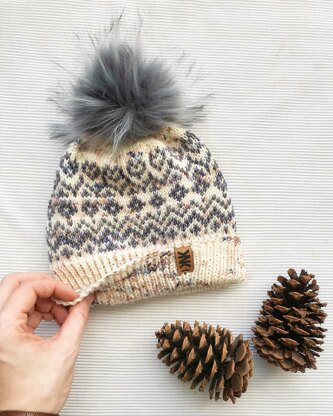 The pattern has instructions for both a worsted (5mm) slouchy hat and DK (3.5mm) convertible version. It can be knit with the words on the front and pattern on the back OR with just the pattern all around, you choose, the more colorful the better!